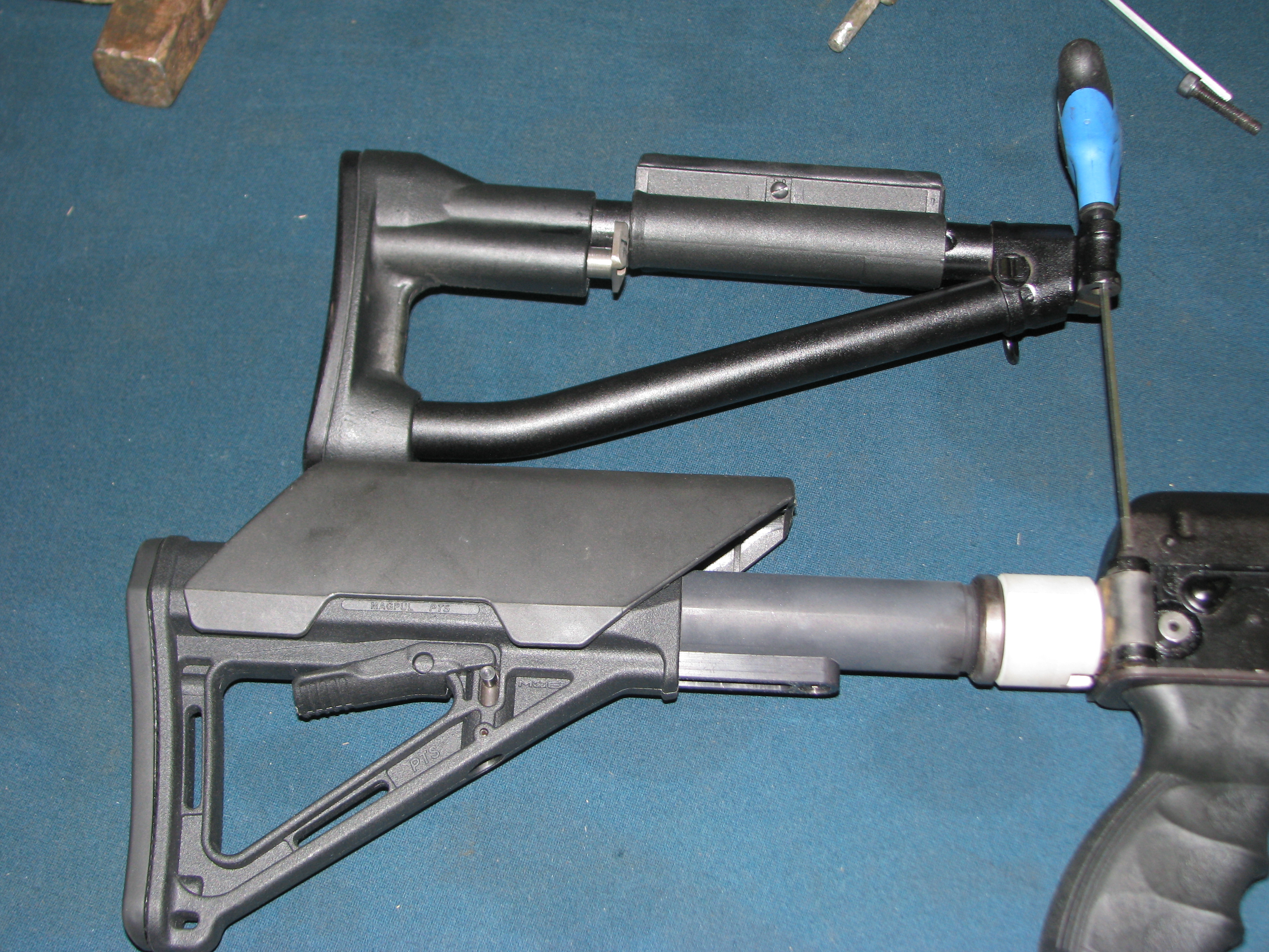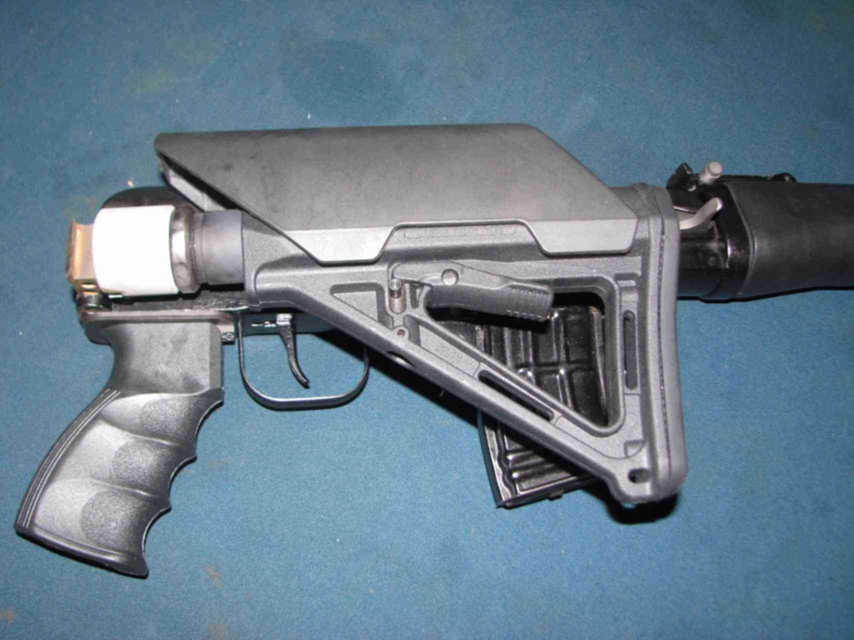 Адаптер приклада монтируется при помощи штатного штифта, который выбивается при снятии старого обвеса. В подавляющем большинстве случаев ставится без внесения серьезных доработок.